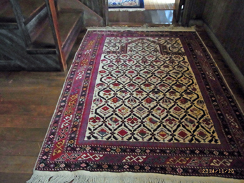いつもお世話になります 今回は 玄関マットを、和作りのお宅なので 遊牧民の作品で モスクに花園です すこし華やかさを抑えた色柄で、バランスのいい事 お客様のセンスに感心しました。